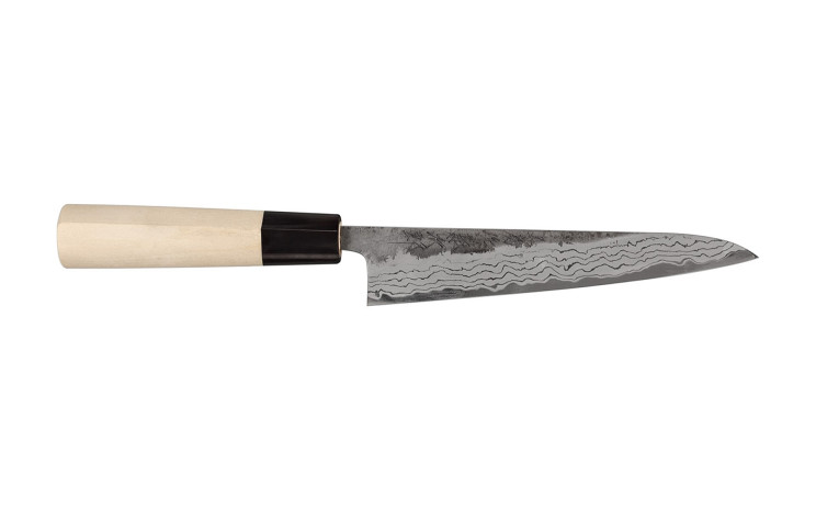 Allzweckmesser von Tojiro mit einer Klingenlänge von 15 cm. Dieses Messer eignet sich zum Schneiden von Obst und Gemüse aber auch Fisch und Fleisch lassen sich damit zubereiten.